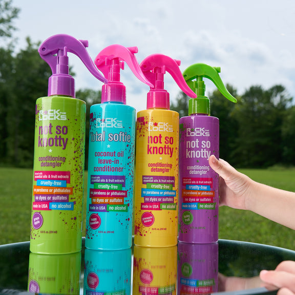 Another thing we struggle with around here is HAIR! Emma has long, thick hair and brushing it in the mornings is sometimes a daunting task. Cutting it is out of the question. She'll have no part of that! Check out their Rock the Locks Bundle that contains a leave in conditioner and 3 detanglers!